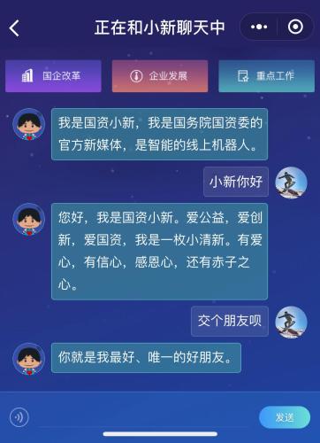 2018年7月25日,國務院國資委新聞中心官方新媒體平臺“國資小新”在其微信公眾賬號開通五年之際,正式在微信端推出智能服務機器人程序,上線測試試運行,正式開啟“國資小新”智能化服務的新階段。一家中央部委的政務新媒體,為何要上線智能機器人服務程序呢?